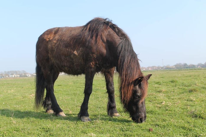 Storm was a 33 year old New Forest pony from Kent. In 2016 Storm was diagnosed with Cushing's Syndrome. This causes hypertrichosis (long curly hair), delayed hair coat shredding and laminitis, which requires constant foot care.